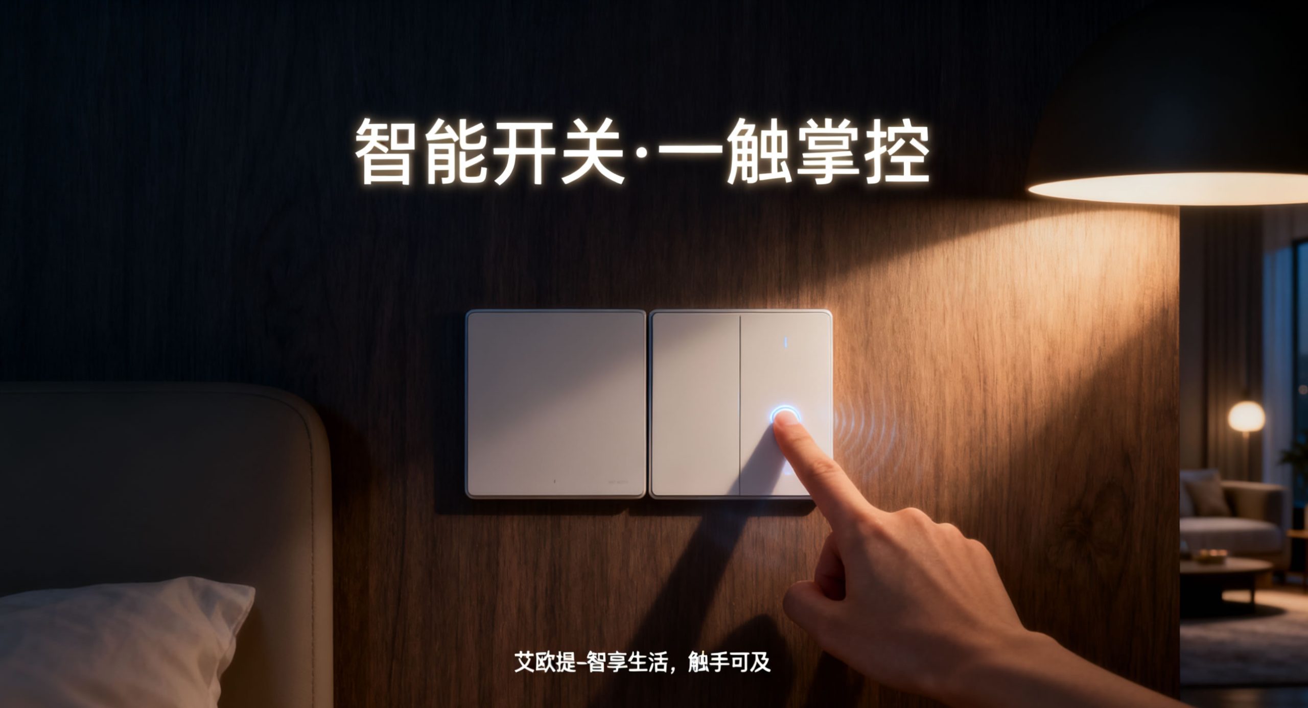 艾欧提智能开关:无需布零线,可根据使用习惯灵活选择安装位置(如门口玄关处、卧室床头两侧、客厅沙发旁);支持单键控制单设备或多设备(如玄关开关可同时控制玄关灯与客厅主灯),按键反馈清晰,外观设计简约,可匹配不同家装风格。